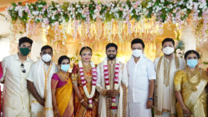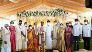 இந்த திருமணத்தில் முக்கிய நபர்கள் 109 பேர்கள் மட்டுமே அனுமதிக்கப்பட்டுள்ளார்கள். பத்திரிகையாளர்களுக்கு அனுமதி இல்லை என்றும் கூறப்பட்டது. இந்த நிலையில் இந்த திருமணத்தில் முதல்வர் முக ஸ்டாலின் மற்றும் உதயநிதி ஸ்டாலின் கலந்து கொண்டார்கள். அவர்கள் மணமக்களை வாழ்த்தியுள்ளார்கள்.