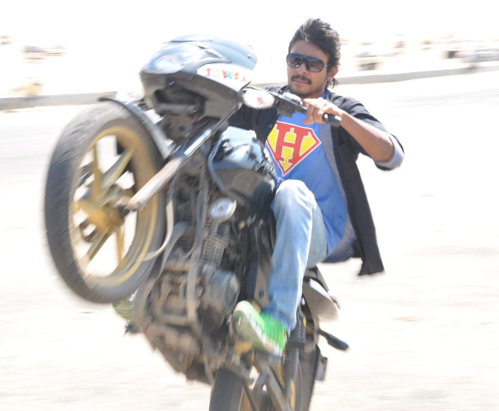 சிறு வயது முதலே பைக் தான் என் உயிராக இருந்துள்ளது. எப்போதும் பைக் ரேஸில் சாதிக்க வேண்டும், பைக் ரேஸராக வர வேண்டும் என்பது தான் என் கனவாக இருந்துள்ளது. பைக் மீதான காதலில் தமிழ்நாடு பைக் ரேஸ் சாம்பியனாகவும் ஆகிவிட்டேன், ஆனாலும் கின்னஸ் சாதனை படைப்பதற்காக 10 கிமி பைக்கில் ஒற்றை சக்கரத்தில் தீவைத்துக்கொண்டு வீலிங் செய்யும் சாதனை முயற்சியை 2009 ஆம் ஆண்டு கின்னஸ் நடுவர்கள் முன்னால் செய்தேன், அப்போது எதிர்பாராமல் என் மேல் பைக் விழுந்து விபத்தாகிவிட்டது. டாக்டர்கள் திரும்பவும் பைக் ஓட்டக்கூடாது என்று கட்டளையிட்டுவிட்டார்கள். என் தாத்தா மீண்டும் என்னை பைக் ஓட்டக்கூடாது என சொல்லிவிட்டார். குடும்பத்தினரின் அன்பு என்னை மாற்றியது அவர்களுக்காக சினிமாவுக்குள் நுழைந்தேன். சமீபத்தில் என் தாத்தாவின் மறைவு என்னை மனதளவில் மிகவும் பாதித்தது, என் கனவு என்னை துரத்திக்கொண்டே இருந்தது. மீண்டும் பைக் தான் என்னை மீட்டெடுத்தது. பைக்கை மீண்டும் தொட்டபோது நான் மீண்டும் உயிர்த்தெழுந்ததாகவே உணர்ந்தேன். என் வாழ்க்கையின் கனவை நிறைவேற்ற மீண்டும் ஆசைப்பட்டேம் அதற்காகவே கடுமையாக பயிற்சி செய்தேன். இப்போது 13 கீமி பைக் சக்கரத்தில் நெருப்பு வைத்துக்கொண்டு வீலிங் செய்து கின்னஸ் சாதனை செய்யவுள்ளேன். வரும் ஜனவரி மாதம் 12 ஆம் தேதி கின்னஸ் உறுப்பினர்கள் முன்னிலையில் சென்னை , பெங்களுர் நெடுஞ்சாலையில் இந்த சாதனை நிகழ்வு நடக்கவுள்ளது. உங்கள் ஆதரவை தாருங்கள் நன்றி என்றார்.