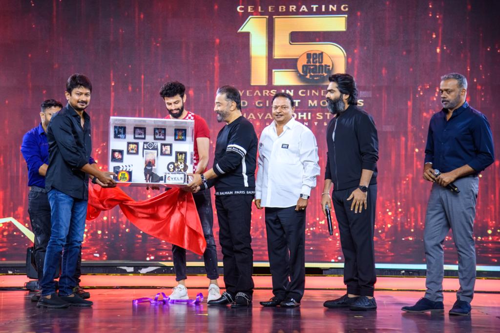 ரெட் ஜெயன்ட் நிறுவனம் 15வது ஆண்டில் அடியெடுத்து வைப்பதை முன்னிட்டு, இதுவரை நிறுவனம் வெளியிட்ட, தயாரித்த படங்களின் நடிகர் நடிகையர் தொழில்நுட்ப கலைஞர்களை கௌரவிக்கும் பிரமாண்ட விழா நேற்று மாலை சென்னையில் நடைபெற்றது.