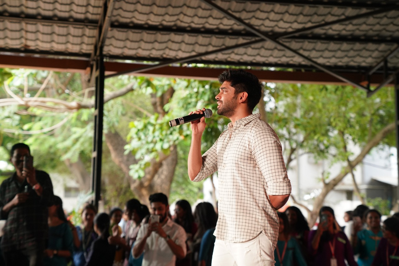 இவ்விழாவில் மாணவிகளின் குறும்புத்தனமான கேள்விகளுக்கு துருவ் விக்ரம் சிரித்துக்கொண்டே பதிலளித்தார். அத்துடன் அவர் எழுதி பாடிய ‘மனசே..’ என்ற சுயாதீன இசை ஆல்பப் பாடலையும் பாடினார். பிறகு நடனமாடி, விழாவை கொண்டாட்டமாக மாற்றினார். நிறைவாக மாணவிகளுடன் தன்னைப்பற்றியும், தன்னுடைய தந்தையான சீயான் விக்ரம் பற்றியும் பல நினைவுகளையும் பகிர்ந்துக்கொண்டார்.