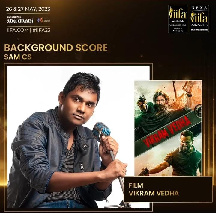 இந்திய திரையுலக கலைஞர்களுக்கு அளிக்கப்படும் சர்வதேச விருதுகளில் ஐஃபா எனப்படும் சர்வதேச இந்திய திரைப்பட விருதும் ஒன்று. சர்வதேச அளவில் பாராட்டைப் பெற்ற இந்தி திரைப்படங்களுக்கு ஆண்டுதோறும் ஐஃபா விருது வழங்கி கௌரவிக்கப்படுகிறது. அந்த வகையில் 2023 ஆம் ஆண்டிற்கு சிறந்த தொழில்நுட்ப கலைஞர்களுக்கான பிரிவில் விருது பெறும் கலைஞர்களின் பட்டியலை விருது குழு வெளியிட்டிருக்கிறது. அதில் சிறந்த பின்னணியிசைக்கான பிரிவில் இந்தியில் வெளியான ‘விக்ரம் வேதா’ எனும் திரைப்படத்திற்காக இசையமைப்பாளர் சாம் சிஎஸ் தேர்வு செய்யப்பட்டிருக்கிறார்.