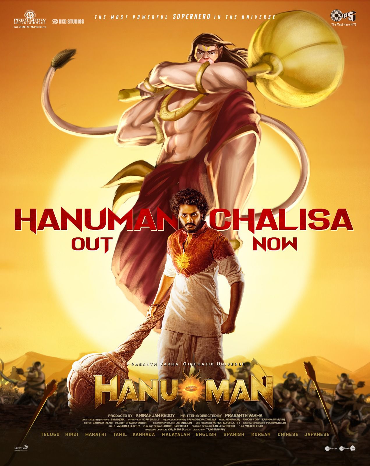 அனுமன் ஜெயந்தியை முன்னிட்டு தேஜா சஜ்ஜா நடிப்பில் தயாராகி இருக்கும் ‘ஹனு-மேன்’ படத்தில் இடம்பெற்ற ஹனுமான் சாலிசா எனும் பாடல் வெளியாகி இருக்கிறது. இந்த பாடலுடன் பாடலுக்கான லிரிக்கல் வீடியோவும், காணொளியும் வெளியாகி இருக்கிறது.