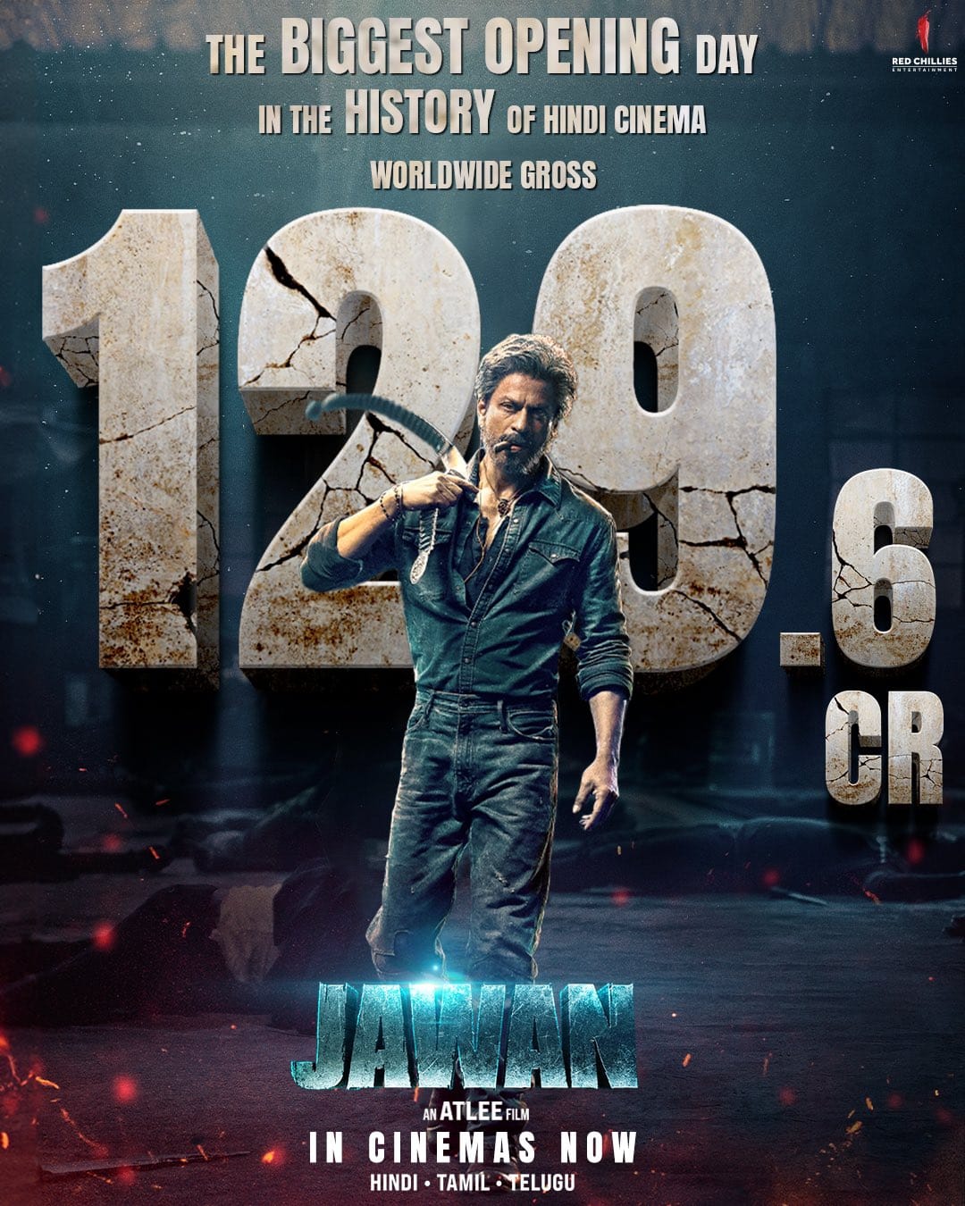 ஷாருக்கானின் ‘ஜவான்’, இந்தி திரையுலக வரலாற்றில் முதல் நாள் வசூலில் 129.6 கோடி ரூபாய் வசூலித்து மிகப்பெரிய தொடக்க நாள் வசூல் சாதனையை பதிவு செய்திருக்கிறது.