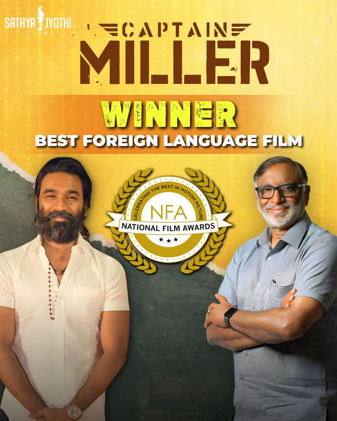 சத்ய ஜோதி பிலிம்ஸின் “கேப்டன் மில்லர்” திரைப்படம், 10வது லண்டன் நேஷனல் ஃபிலிம் அகாடெமி திரைப்பட விருதுகளில், சிறந்த வெளிநாட்டுத் திரைப்பட விருதை வென்றுள்ளது!
