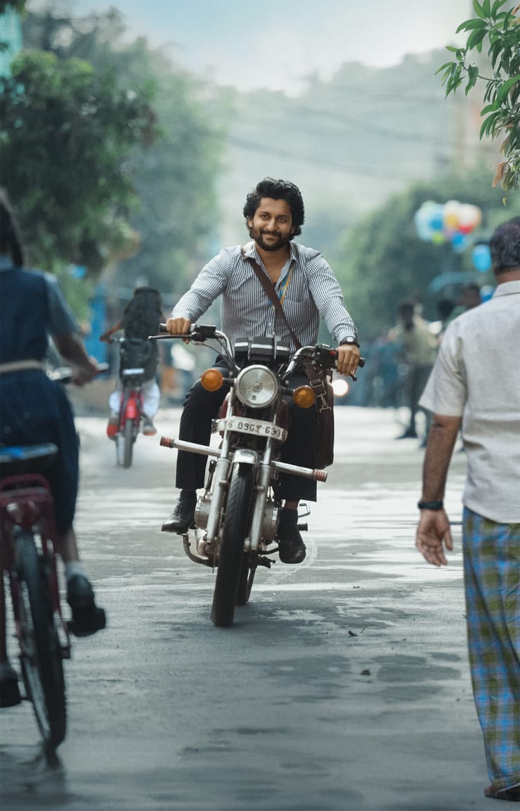 ‘சூர்யா’ஸ் சாட்டர்டே’ திரைப்படத்தின் தயாரிப்பாளர்கள்- இதுவரை வெளியிட்ட விளம்பரங்களில் சூர்யா அல்லது ‘நேச்சுரல் ஸ்டார்’ நானியை ஆக்ரோஷமான இளைஞனாகவே காட்சிப்படுத்தினர். ஆனால் அவர் சனிக்கிழமைகளில் மட்டுமே வன்முறையாளர். மற்ற நாட்களில் சூர்யாவின் தோற்றத்தை ரசிக்கவும், அவரது புதிய பரிமாணத்தை அனுபவிக்கவும்.. தற்போது அந்த கதாபாத்திரத்தின் செகண்ட் லுக்கை வெளியிட்டுள்ளனர். இந்த போஸ்டரில் ‘நேச்சுரல் ஸ்டார்’ நானி நம் பக்கத்து வீட்டு பையனின் அவதாரத்தில், வசீகரிக்கும் புன்னகையுடன் தோன்றுகிறார். மேலும் அந்தப் போஸ்டரில் அவர் பைக் ஓட்டுவது போலும் உள்ளது.