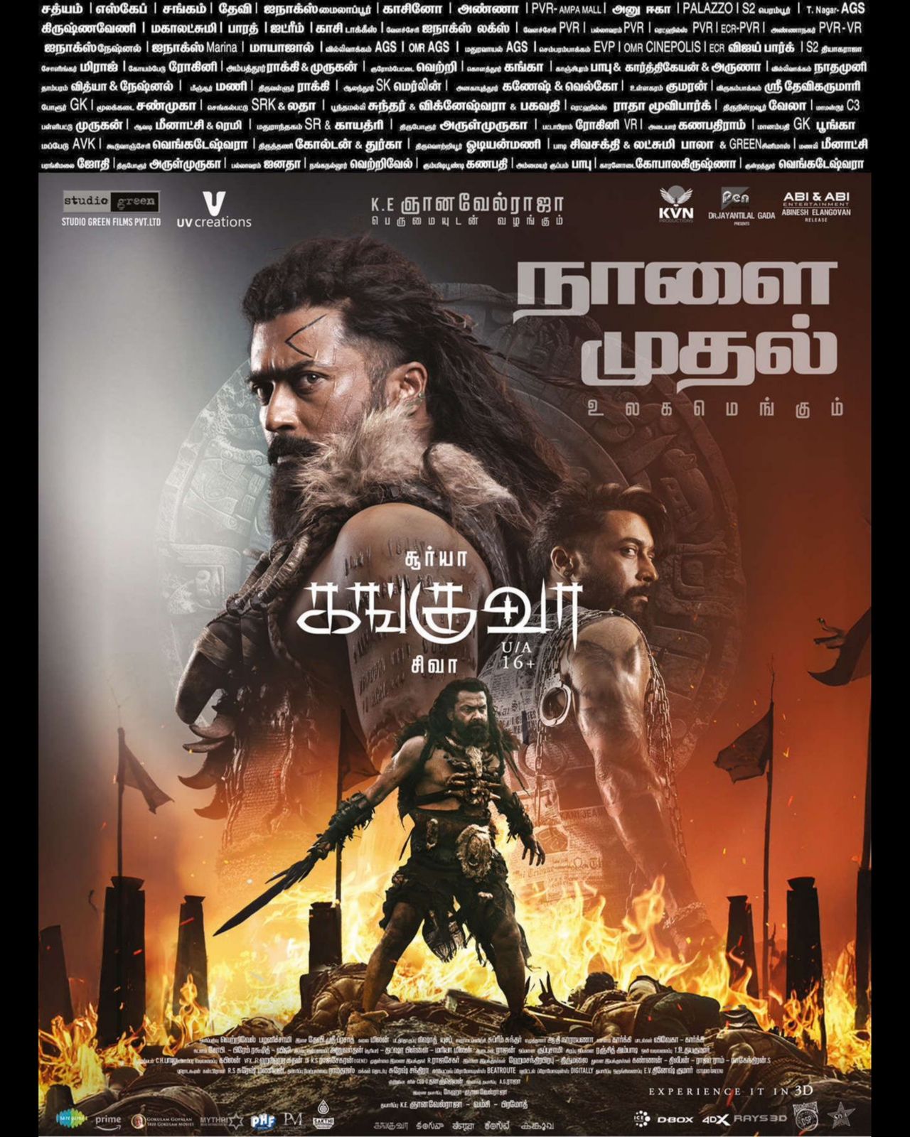நாளை வெளியாகிறது நடிகர் சூர்யாவின் ‘கங்குவா’ திரைப்படம். புதிய போஸ்டரை வெளியிட்டுள்ளது திரைப்படக் குழு.